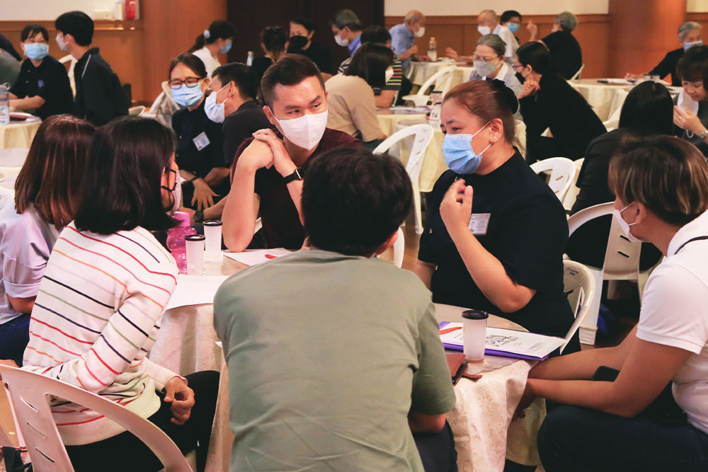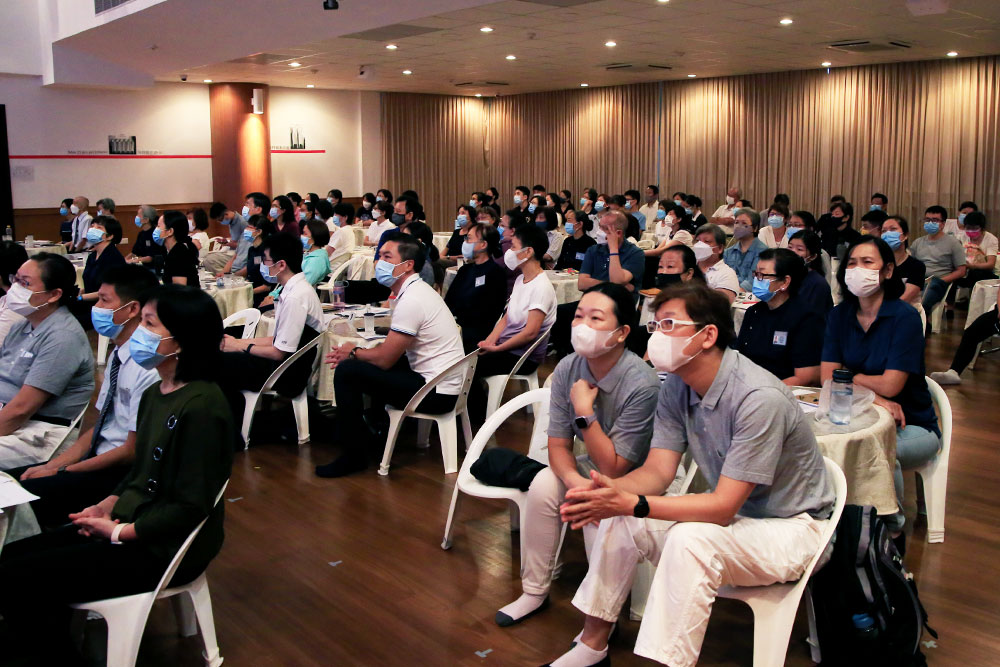 A jam-packed 3-hour course with audiences listening attentively to the sharing by the home visit volunteers.
