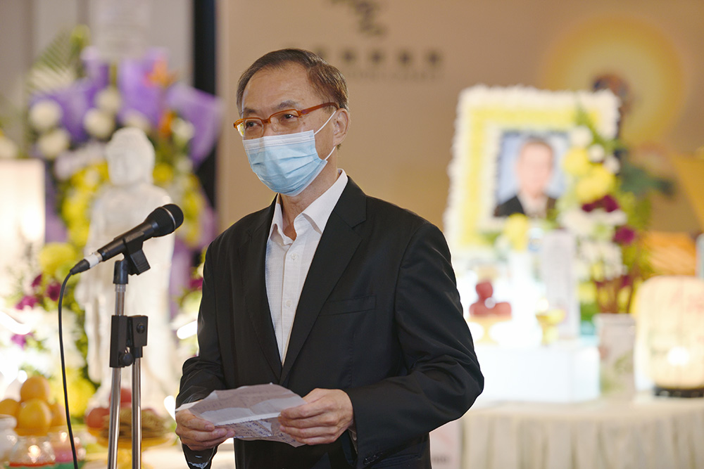 现代企业管理协会前会长程宇超,朗读伙伴们对沈喜洲的追思感言,并发心继承他热心公益的遗愿。(摄/ 黎东兴)