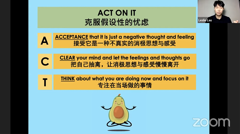 他提醒观众可以以“ACT”的方式保持自我觉察(Self-awareness),审视自己的忧虑是否为“自我假设的”,一旦学会平衡和化解这些不舒服情绪,就能克服“假设性忧虑”,培养出足以处理生命挑战的自信与力量。