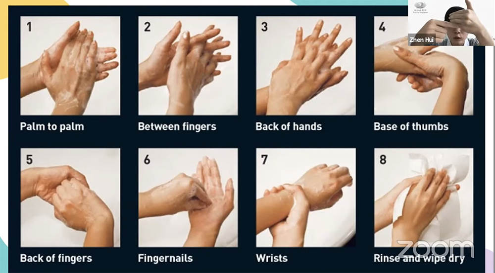李珍慧说,勤洗手和保持良好的卫生习惯,仍是防疫最基本、也最有效的原则。她进一步详解洗手的正确八步骤和洗手的正确时间,并提醒要手抹肥皂搓揉至少20秒。