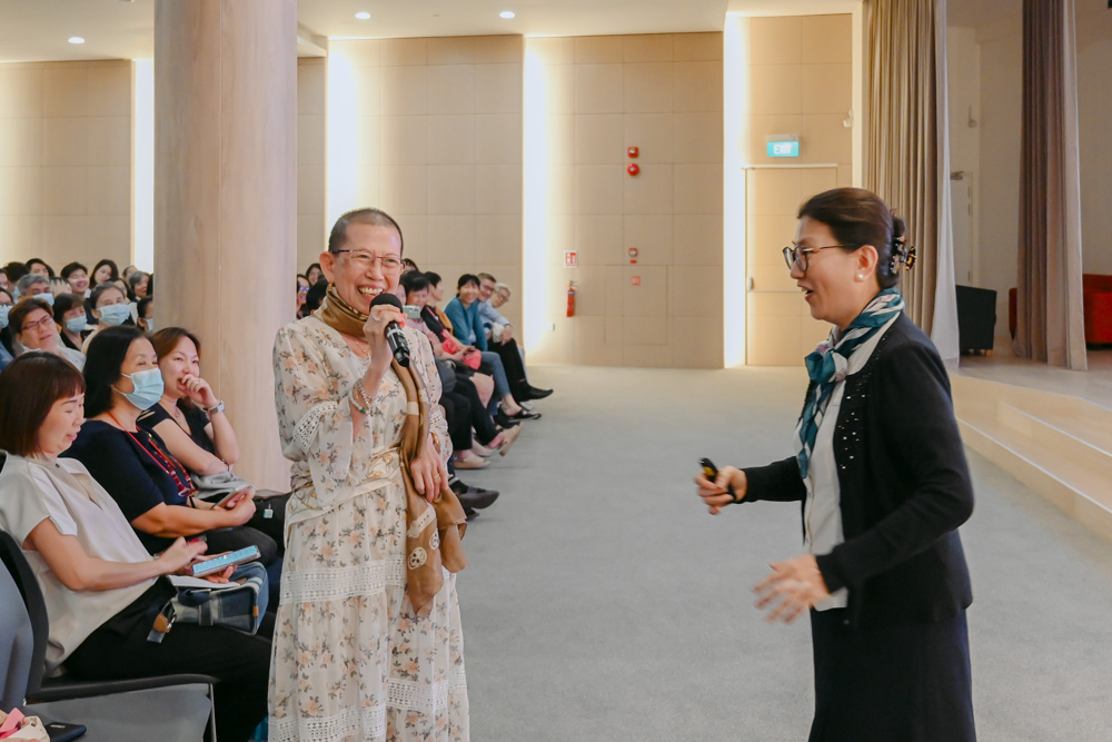 还未等大家思考出答案,慈济基金会(新加坡)执行长刘瑞士便走上台,与谢丽华展开了一场职场模拟角色扮演。