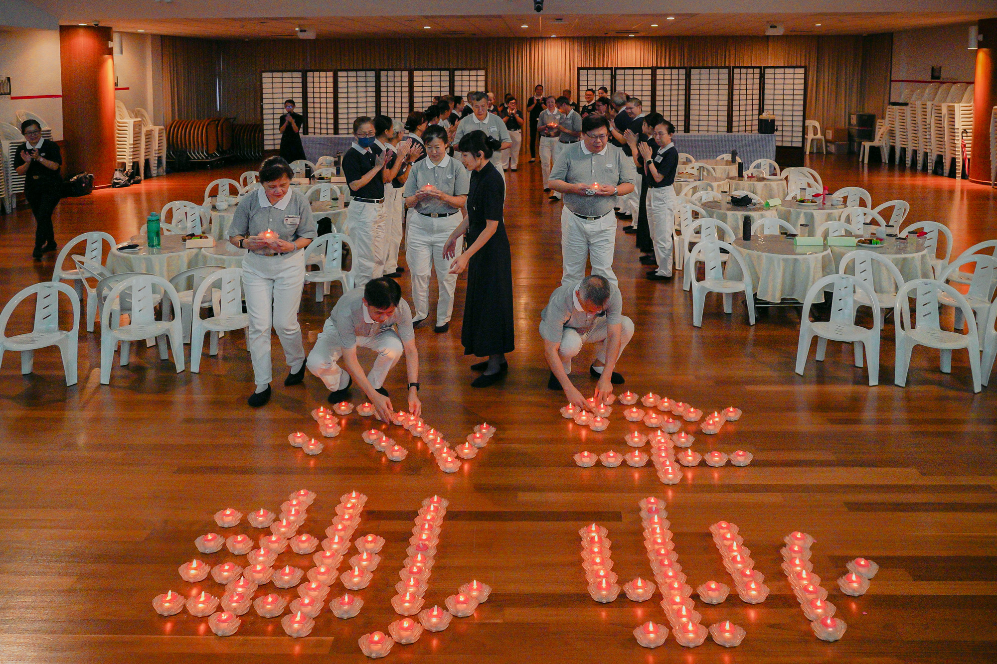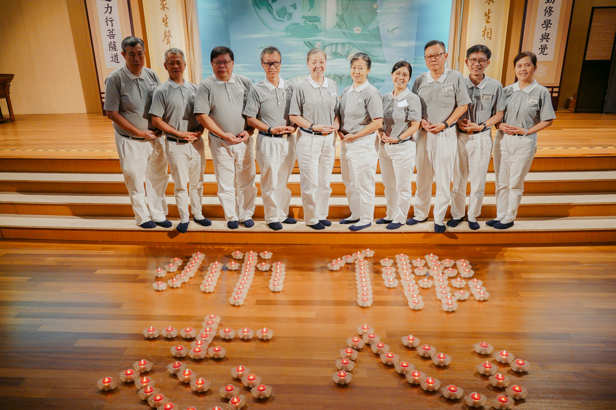 祝福会尾声,准慈委手捧心灯,缓步走向舞台前方,将心灯排出“佛心师志”,象征承诺传承静思法脉、弘扬慈济宗门,照亮未来人间菩萨道的每一步。